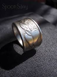 Spoon rings originated in 17 century England when servants would steal or be given odd silver spoons from their Masters houses so they could make and shape into rings for their loved ones. Lots were used as wedding rings in that time. Now they were used more as friendship and dress rings and could be worn by men or women alike.